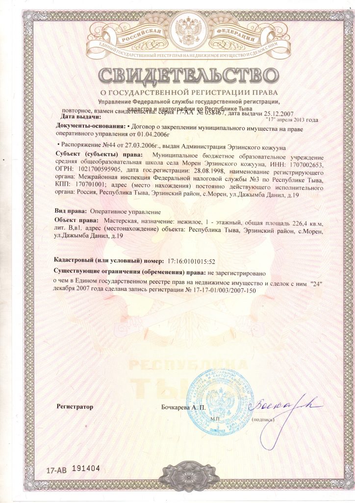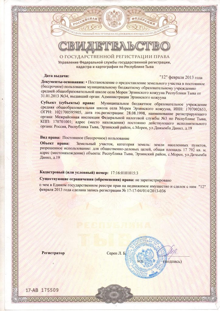 РТ, Эрзинский кожуун, с.Морен, ул. Дажымба Данил, д.19.