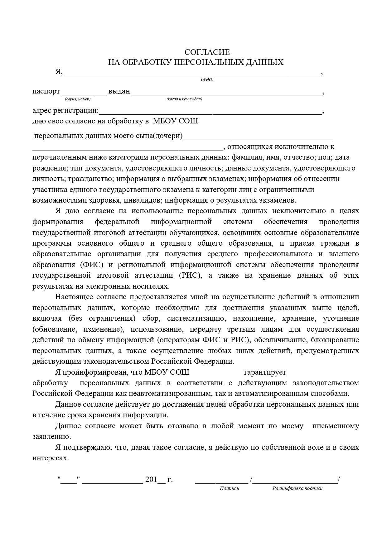 согласие родителей на прохождение обучения по адаптированной программе;
