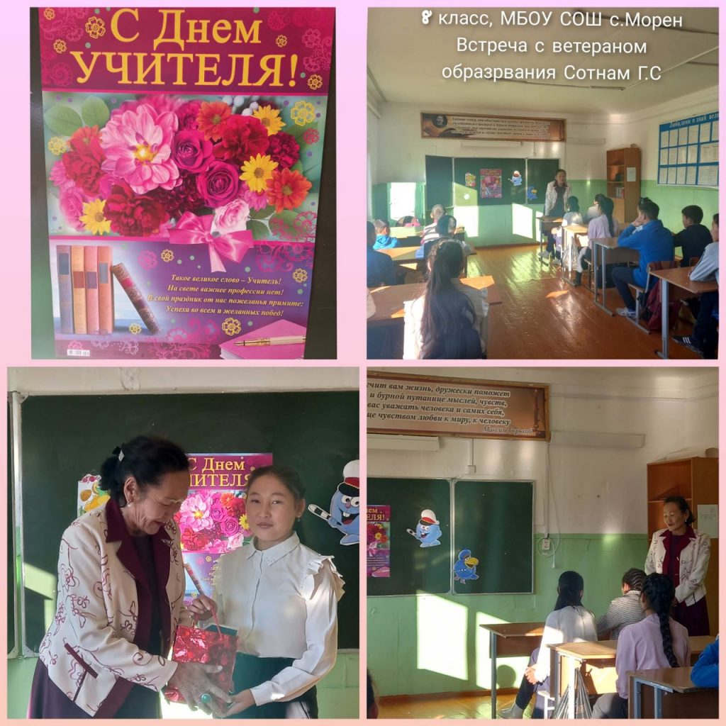 3 октября 2022г. в преддверии Дня Учителя, состоялась классная встреча с ветеранами педагогического труда в рамках проекта «Разговоры о важном». На встречу пришли: Допчут Светлана Борагаевна — ветеран труда, почетный работник образования; Хомушку Галина Сояновна- почётный работник образования ветеран труда; Худер Жанна Куровна — почётный работник воспитания и просвещения РФ; Кулдун Зоя Чылааевна- почетный работник, ветеран труда; Демир-оол Свелана Арияевна — ветеран труда, почетный работник образования; Ынаалай Светлана Иргитовна — ветеран труда, почетный работник образования; Дензин Чечена Крылововна ветеран труда, почетный работник образования; Сотнам Галина Соян-ооловна-ветеран труда, отличник народного просвещения; Доктаалай Светлана Ырбыевна- почётный работник образования, ветеран труда; Карти Любовь Намзыраевна-ветеран труда, почетный работник образования.