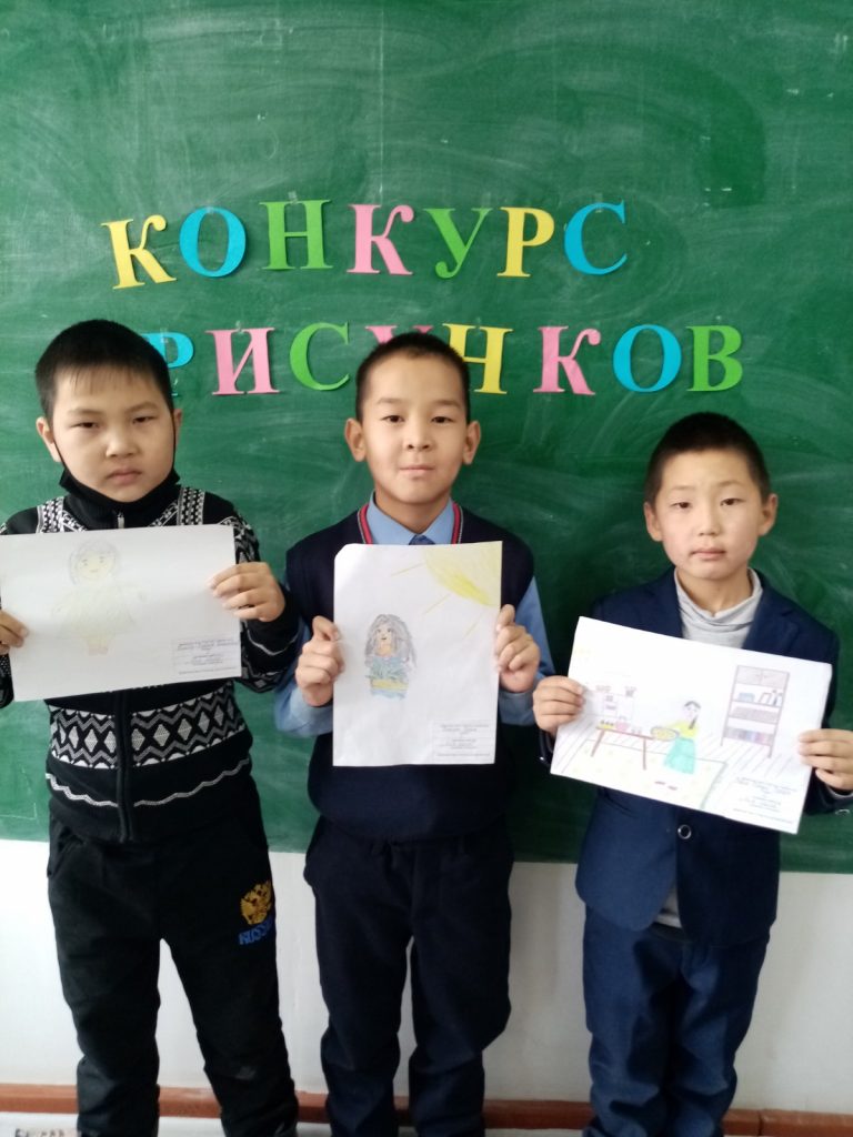Активтивисты РДШ (2класс) МБОУ СОШ с. Морен, участвуют в конкурсе рисунков «Наши мамы разные-все они прекрасные»